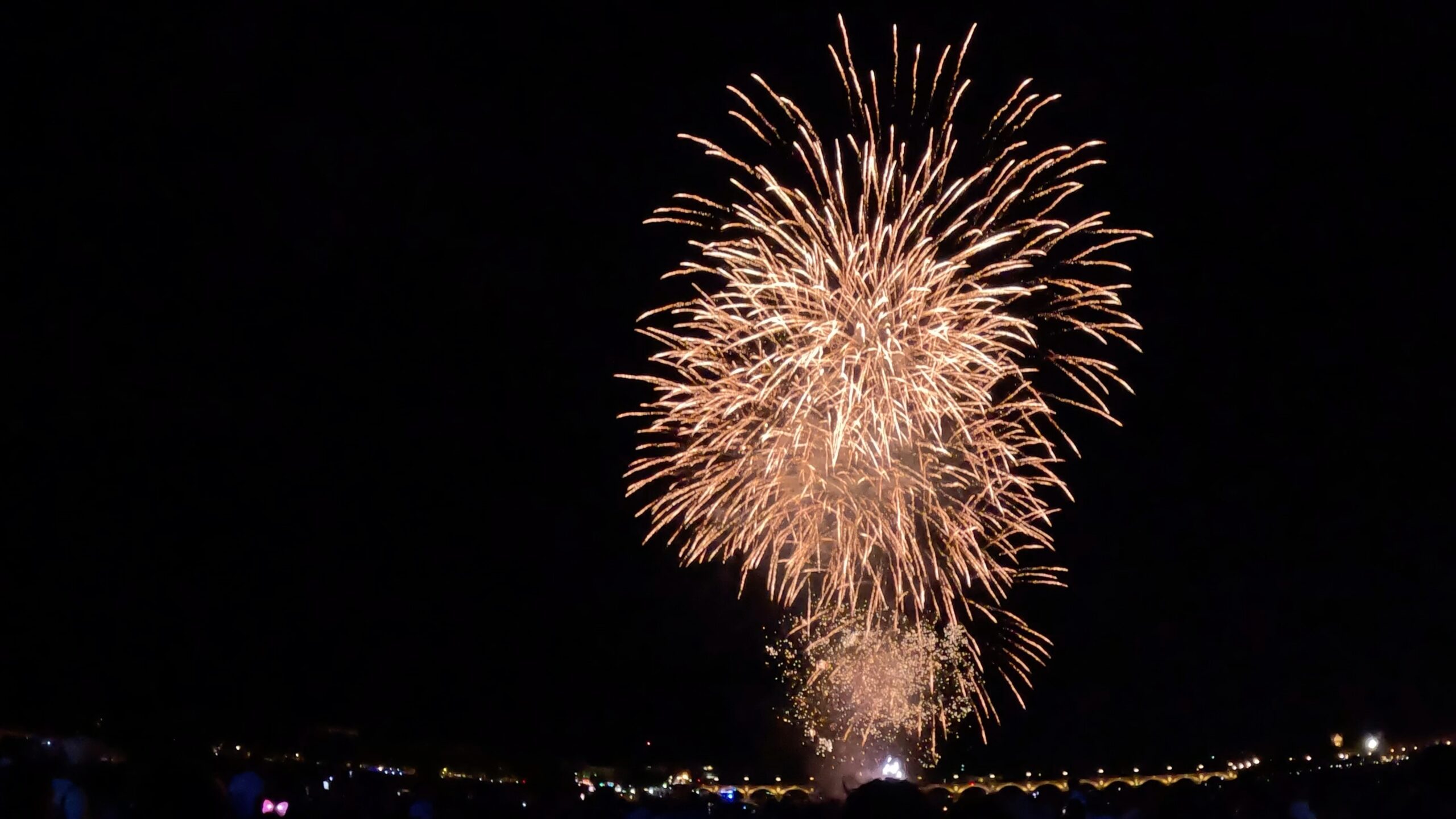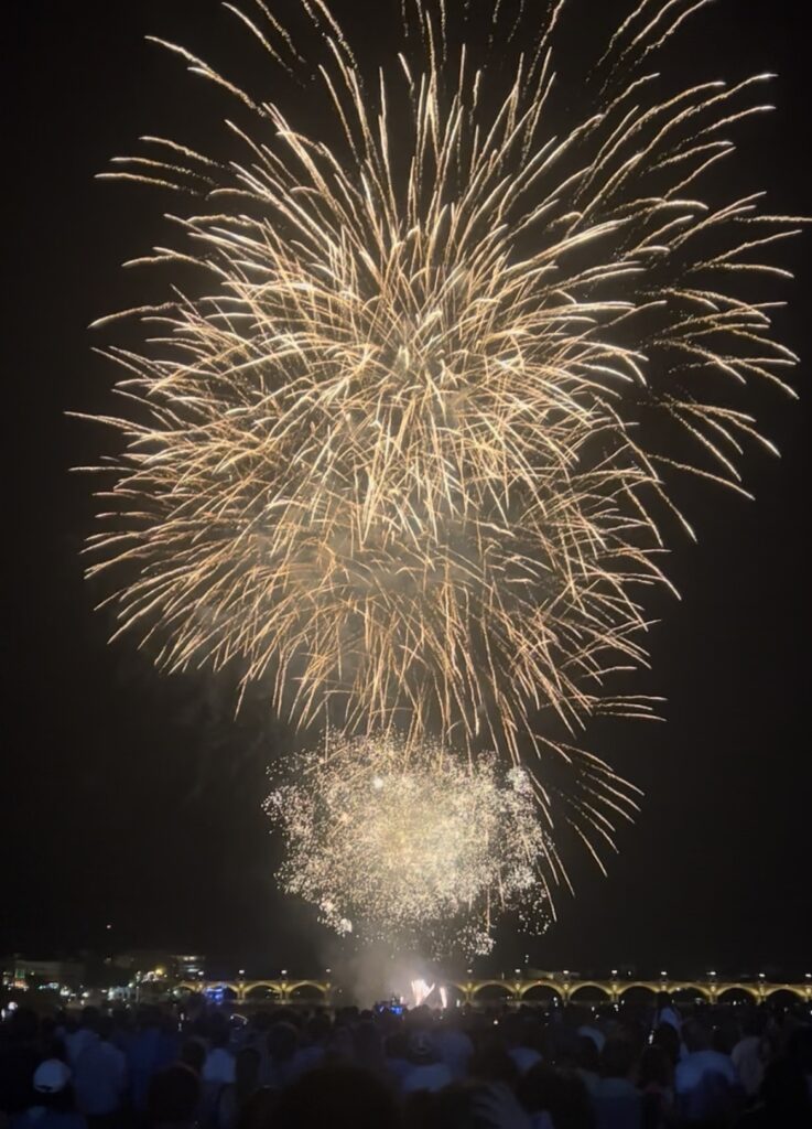 日本の花火とよく似た構成なのが面白い。けれど、ガロンヌ川にかかるピエール橋の灯りと花火のコントラストを見ていると、