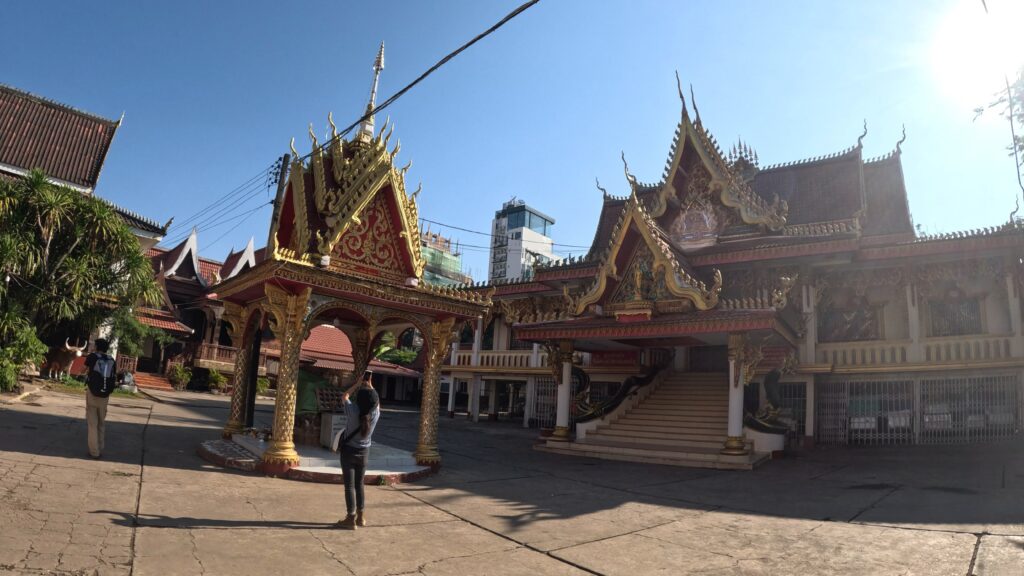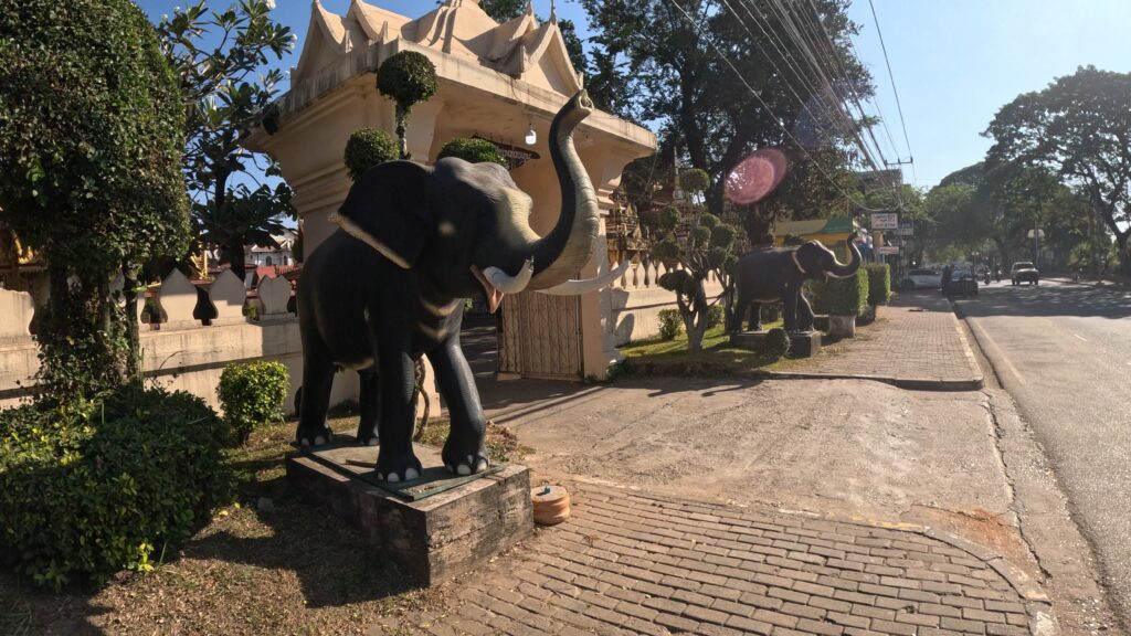 立ち寄った寺院は、金色の尖塔に象と、タイの様式によく似ている。10,000キップ=約73円(訪問時)。とりあえず3万円を両替し、ずっしりと厚みを増した財布をポケットに、さらに市街地へと足を進めた。