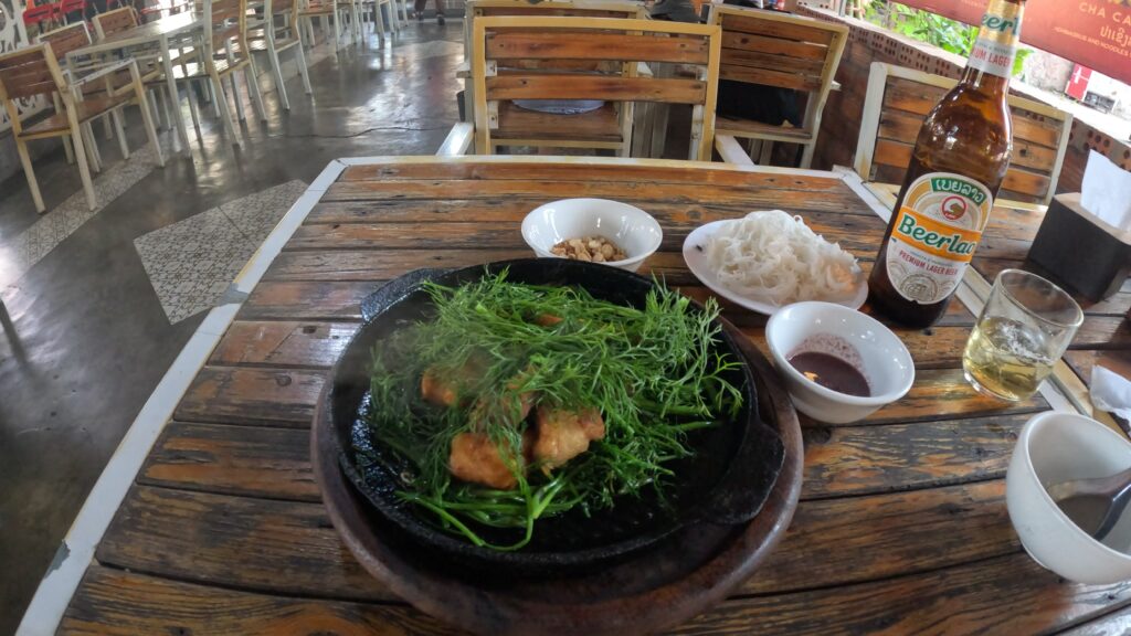 注文したのは、揚げた淡水魚に山盛りのディルを乗せた料理。後で知ったが、これは「チャーカー・ラン」というベトナム由来の料理らしい。