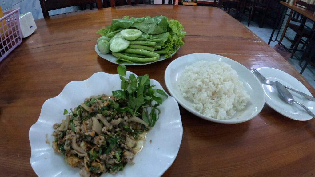 運ばれてきたのは、ラープとご飯、そして山盛りの生野菜。
