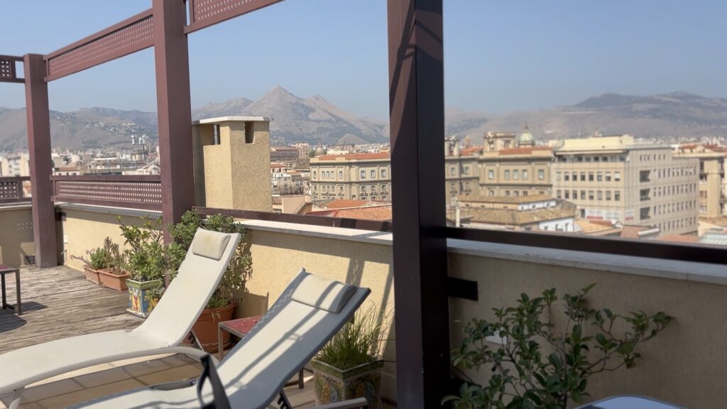 屋上テラスからは、パレルモの街を360度見渡せる。