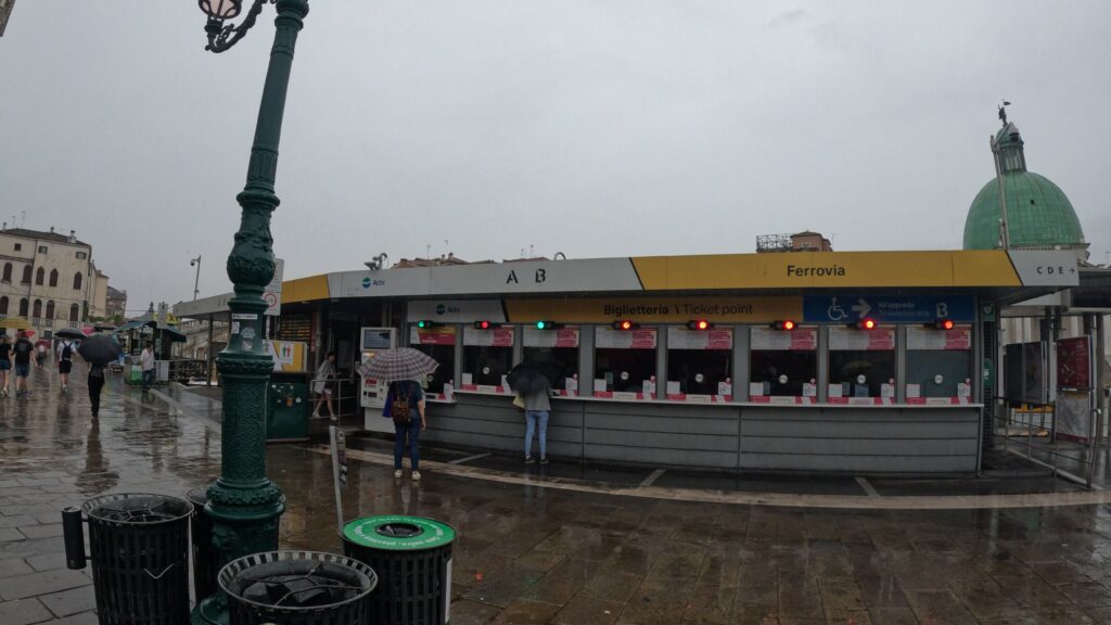 ところが、この窓口が驚くほど見つからない。小雨が降る中、サンタ・ルチーア駅前やローマ広場といった主要な場所を歩き回るが、一向に見当たらない。結局、カナル・グランデ(大運河)沿いまで足を伸ばしてようやく発見。ヴェネツィアは最後まで「迷宮」として楽しませて(苦しませて?)くれる。